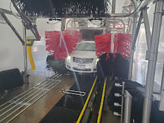 This car wash is new. It has an option to purchase a monthly fee for unlimited car washes. We do that, so every few days we can have the vehicle washed for the monthly fee. It matches your vehicle license and your credit card so no swiping your card each time you go. Two attendants help with mirrors and any other attachment to your vehicle. One uses a long-handled sponge washer to clean the windshield and back windows and/or tailgate. The other attendant is available for questions and concerns. The automatic track pulls you through the wash. It is very thorough and leaves the vehicle sparkling. There are several options from basic wash and wax to more elaborate cleaning. There are many vacuums to self-clean your vehicle's interior. We are very satisfied returning customers!